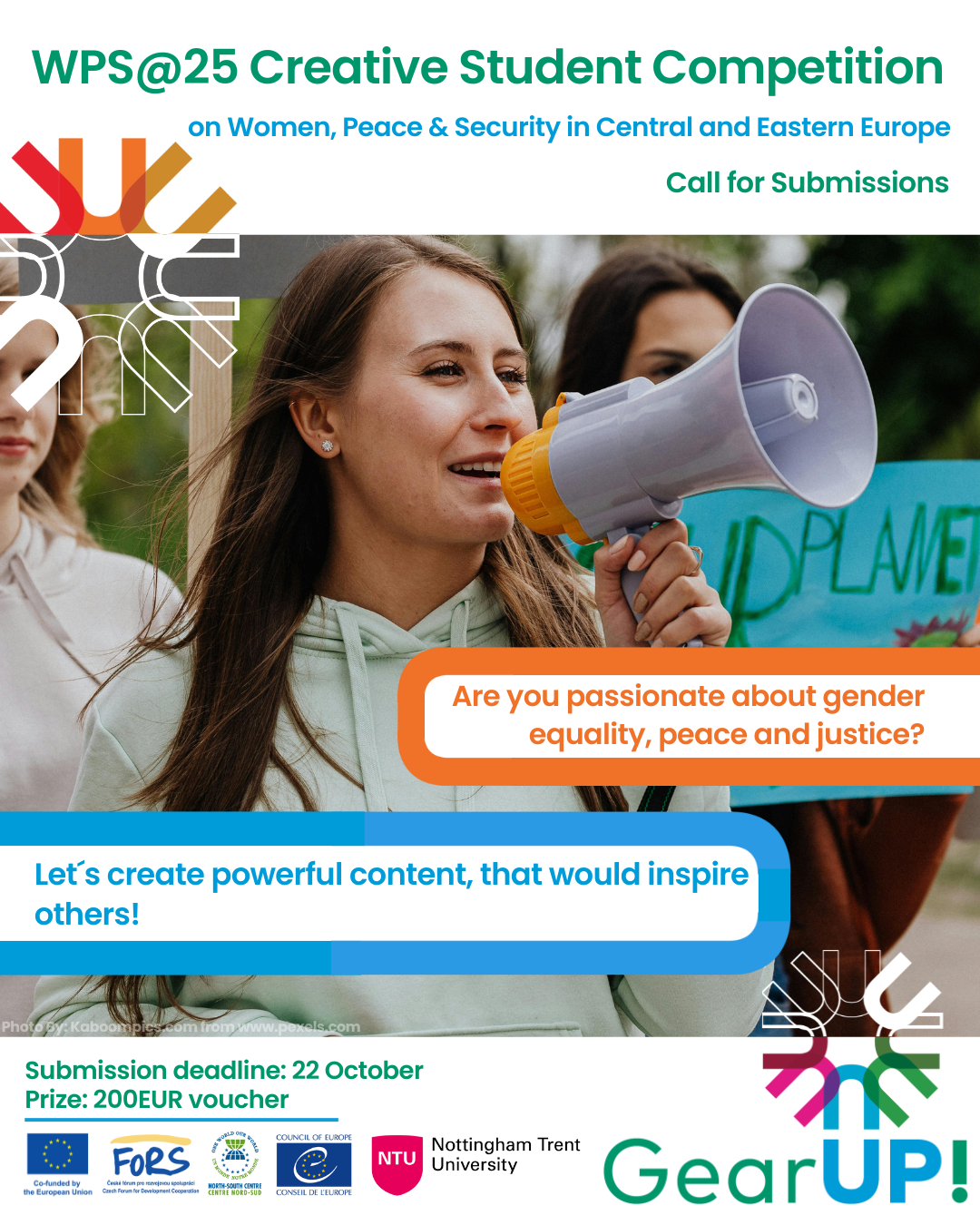 A my to chceme pořádně oslavit! Spouštíme WPS@25 Creative Student Competition – soutěž pro studenty středních a vysokých škol z celého světa. Hledáme vaše originální nápady a vize míru a rovnosti. 🎨🎥🎙️